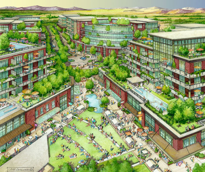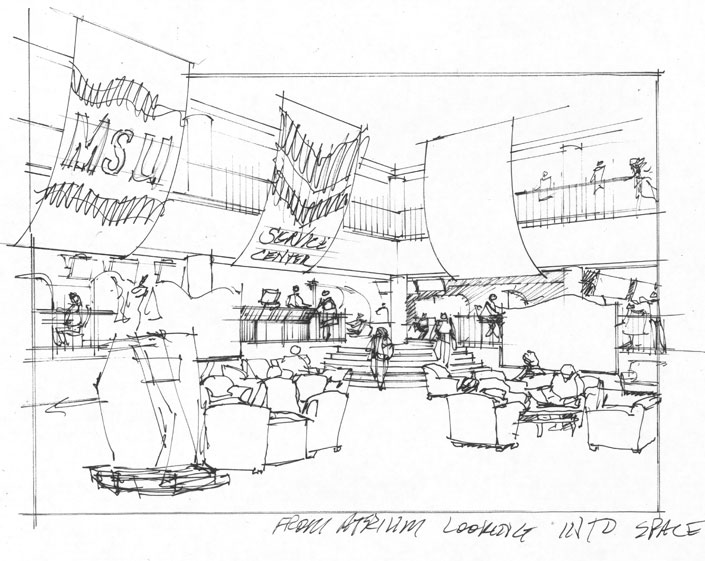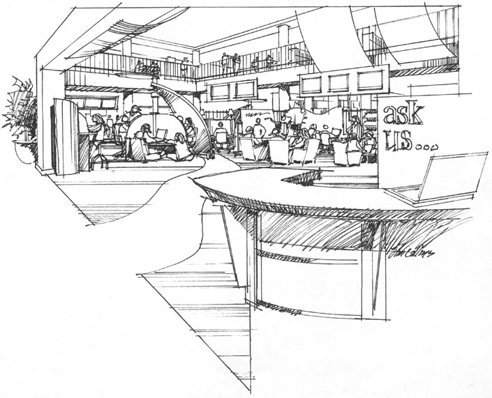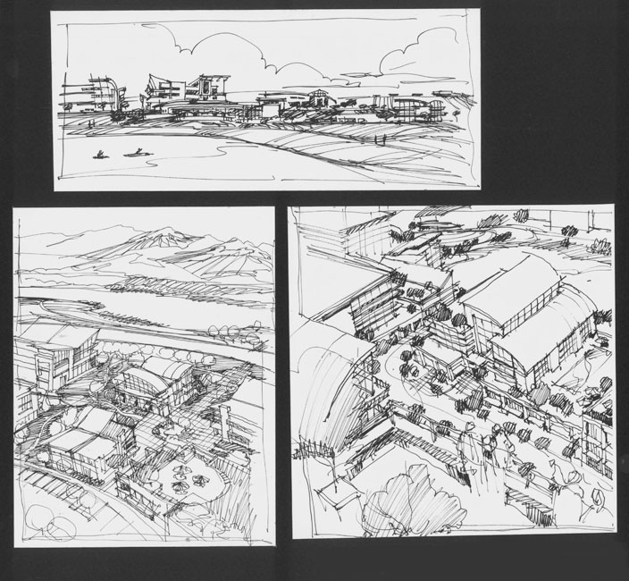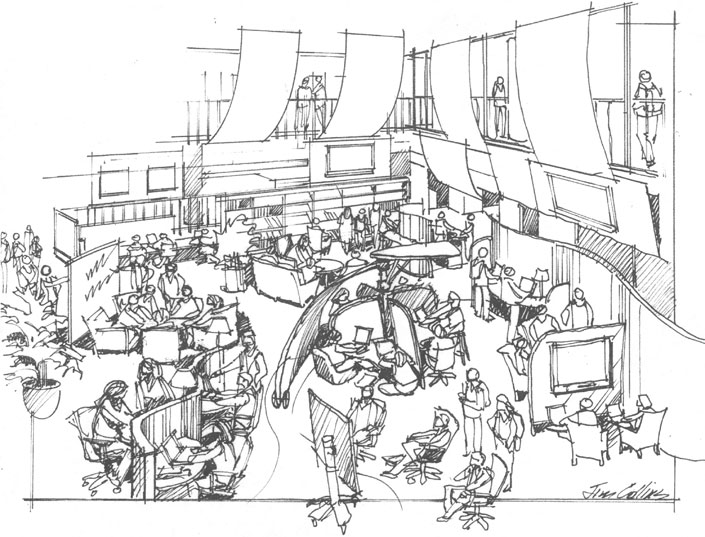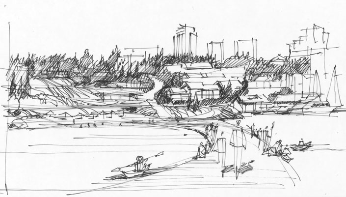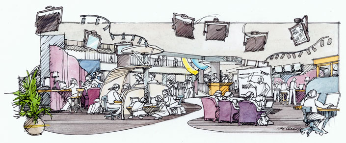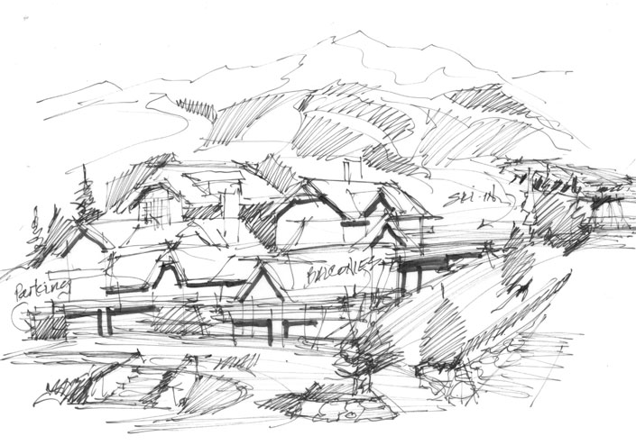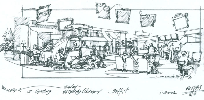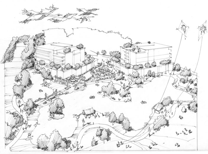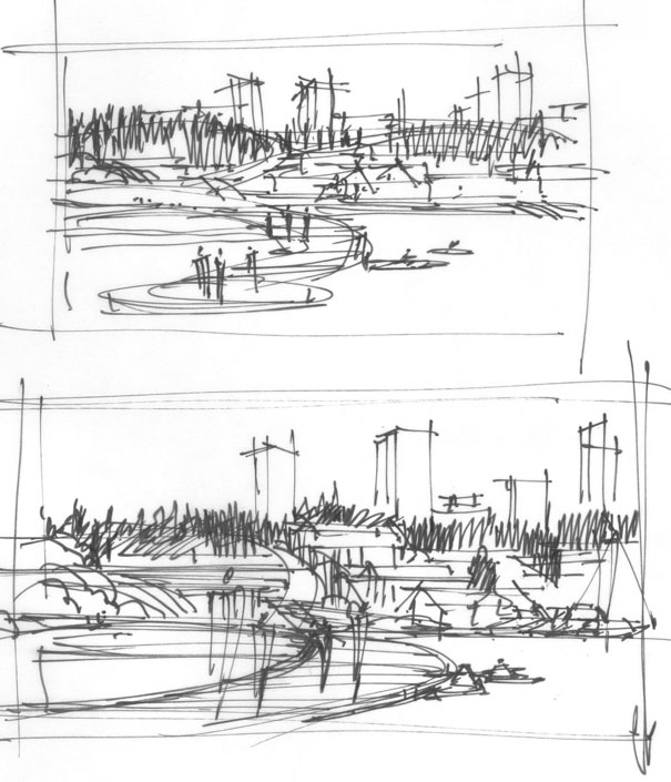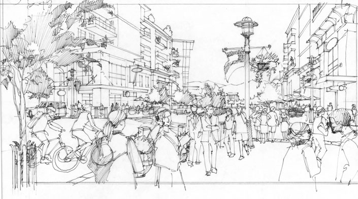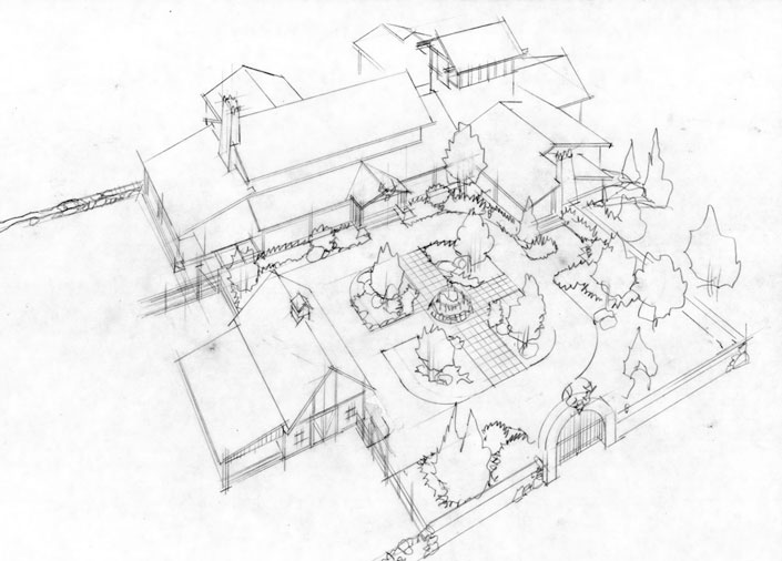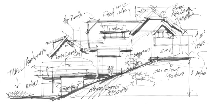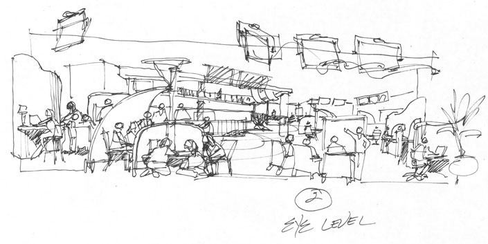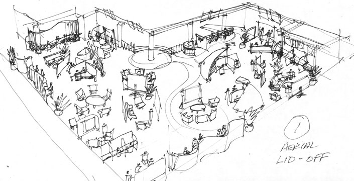 The visualization of an idea can be as simple as a quick sketch or a series of sketches in a storyboard form. This begins to establish a vision for the project and allows the client to take an active role in the creative process. Sketches and concepts with the right feel can standalone or be refined and drawn with greater detail. The addition of color and entourage creates a mood that turns the initial concept into a marketing or visual presentation that communicates the big idea of the design project.